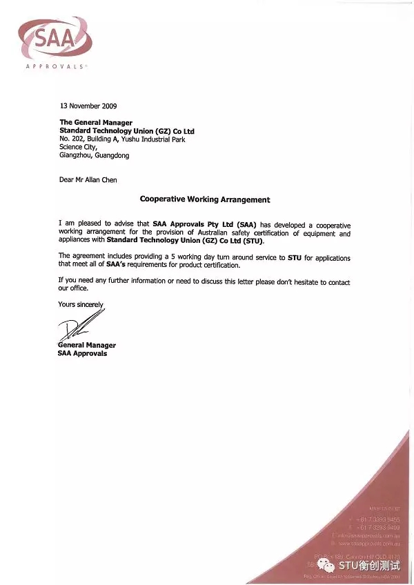 澳洲國(guó)家發(fā)證機(jī)構(gòu)SAA授權(quán)