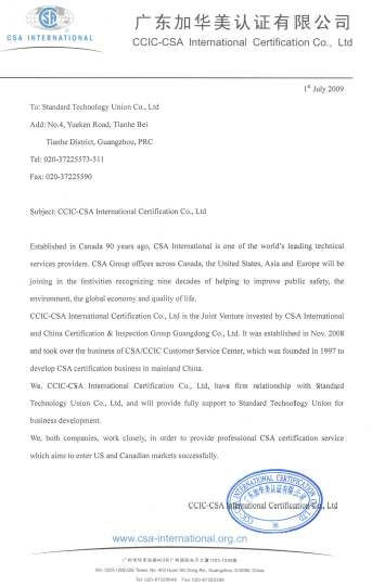 加拿大國家發(fā)證機(jī)構(gòu)CSA授權(quán)