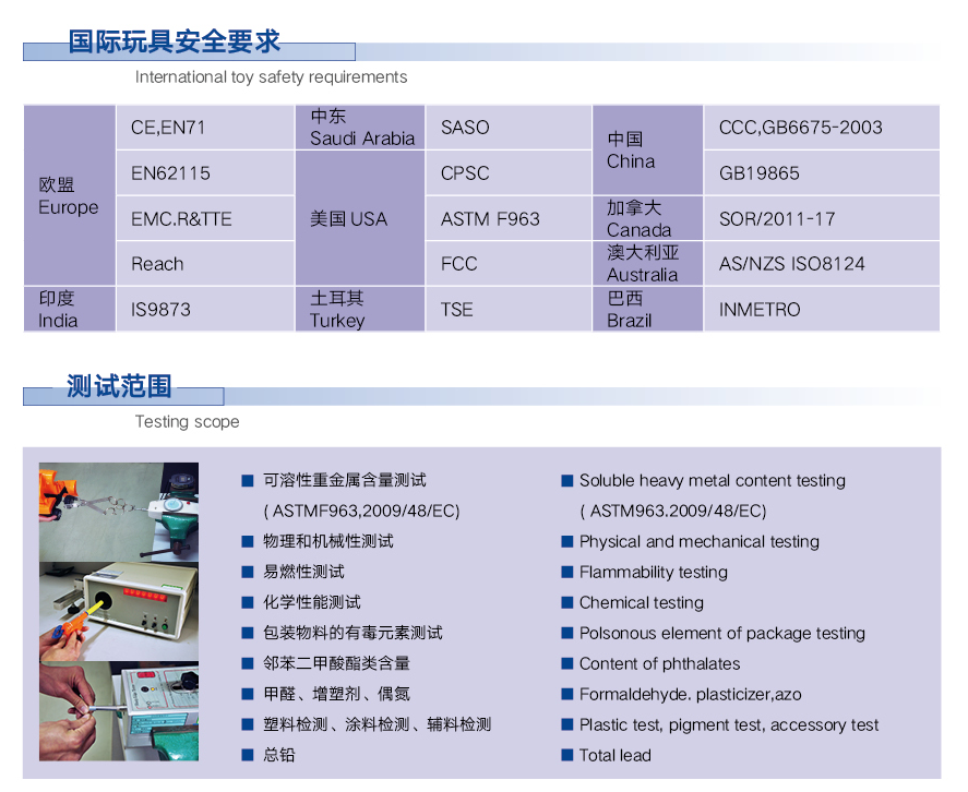 Based on the safety and health concern towards toy. testing standards and regulations are set up gradually .STU toy department could provide comprehensive testing service, and provide accurate testing service according to the latest standards of various countries.