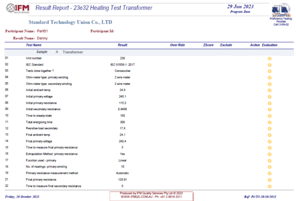 IFM(IFM Quality Services Pty Ltd)是國(guó)際電工委員會(huì)電工產(chǎn)品安全認(rèn)證體系(IECEE)指定的能力驗(yàn)證服務(wù)機(jī)構(gòu)。能力驗(yàn)證計(jì)劃旨在提高各個(gè)CB體系成員實(shí)驗(yàn)室間的測(cè)試一致性、再現(xiàn)性和互信度,要求實(shí)驗(yàn)室對(duì)檢測(cè)標(biāo)準(zhǔn)有精準(zhǔn)的理解,并全面深入地掌握IECEE各項(xiàng)技術(shù)決議等相關(guān)內(nèi)容。IECEE要求各CBTL實(shí)驗(yàn)室必須定期參加國(guó)際能力驗(yàn)證,以證明并保障各個(gè)認(rèn)可實(shí)驗(yàn)室能很好地完成CB測(cè)試與認(rèn)證。