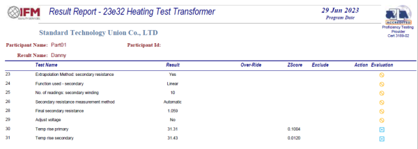 近日,廣州衡創(chuàng)測(cè)試技術(shù)服有限公司參加了IFM舉辦的23e32變壓器繞組溫升能力驗(yàn)證測(cè)試,測(cè)試結(jié)果為“優(yōu)秀”。該測(cè)試為全球性國(guó)際能力驗(yàn)證計(jì)劃之一。